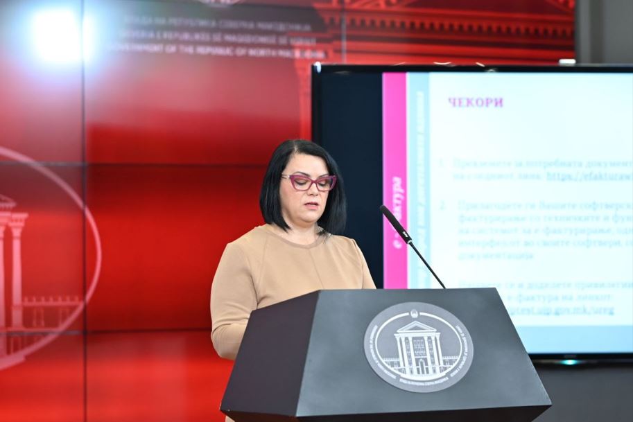 – Со е-фактурата ја правиме економијата пофер, потранспарентна и поотворена за инвестиции, а конкуренцијата ја подигнуваме на повисоко ниво. На овој начин обезбедуваме фер услови за работа и основа за одржлив економски раст, кој директно придонесува за подобрување на животниот стандард на граѓаните. Од друга страна, за државата, е-фактурата ќе овозможи поефикасна наплата на даноците, заснована на точни и реални податоци, како и поцврста и попрецизна борба против сивата економија – рече министерката.