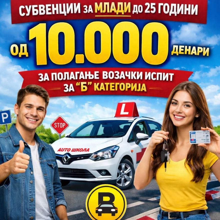 Општина Гази Баба ќе доделува по 10.000 денари субвенции за полагање на возачки испит на младите на возраст од 18 до 25 години.