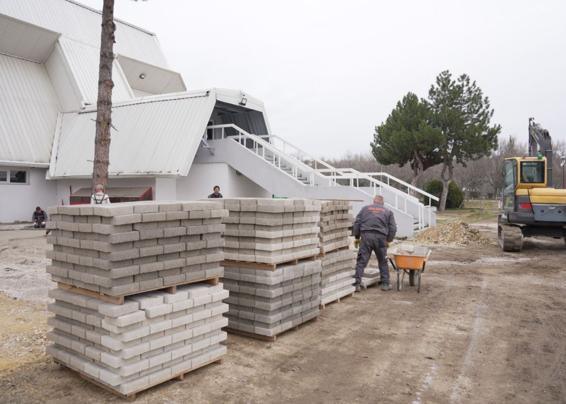 Во тек е партерно уредување околу објектот на спортската сала во Куманово.