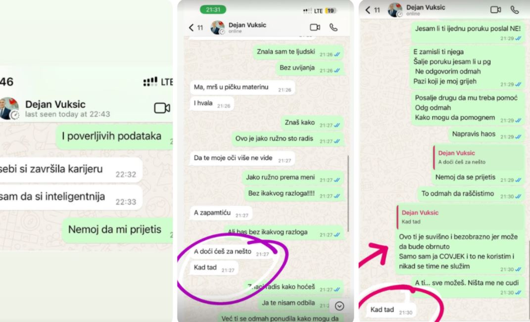 Мирјана Пајковиќ, поранешната државна секретарка во Министерството за човекови и малцински права на Црна Гора, објави дел од својата преписка со Дејан Вукшиќ, поранешниот шеф на АНБ, кој исто така поднесе оставка откако експлицитните снимки беа објавени во јавноста.