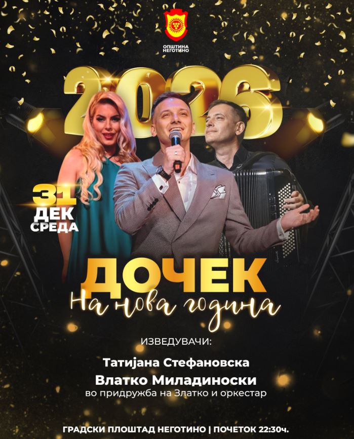 – На 31 декември од 12:00 часот, плоштадот ќе биде исполнет со детска радост и со празнична атмосфера наменета за нашите најмлади жители. Со нив ќе се дружат омилените ликови Гринч и Стич, а во 12:30 часот ќе настапи Пајак. Во 22:30 часот ќе продолжи пречекот на новата 2026 година со концерт на Татјана Стефановска и Влатко Миладиновски, во придружба на Златко и оркестарот – најави Нацева.