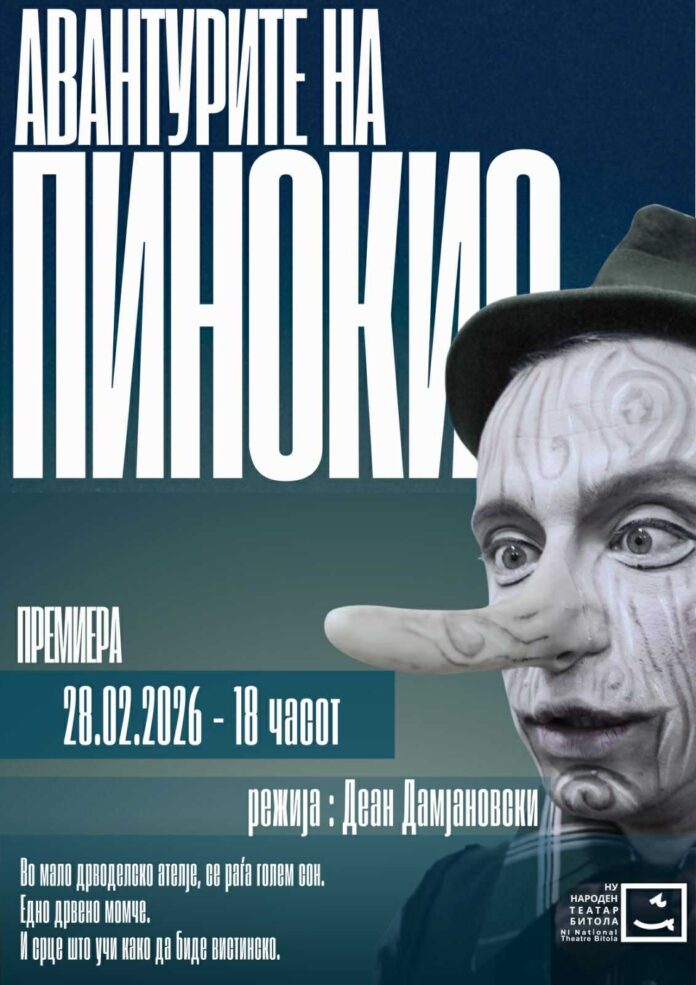 Театарската претстава „Авантурите на Пинокио“ од Карло Колоди, а во режија на Деан Дамјановски, премиерно ќе се изведе на 28 февруари, со почеток од 18:00 часот на Големата сцена на Народниот театар Битола.