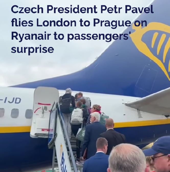 Видеото со чешкиот претседател Петр Павел стана вирално откако тој беше виден како се качува на лет на „Рајанер“ од Лондон до Прага без никакви посебни привилегии.