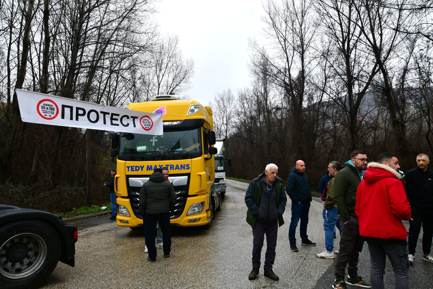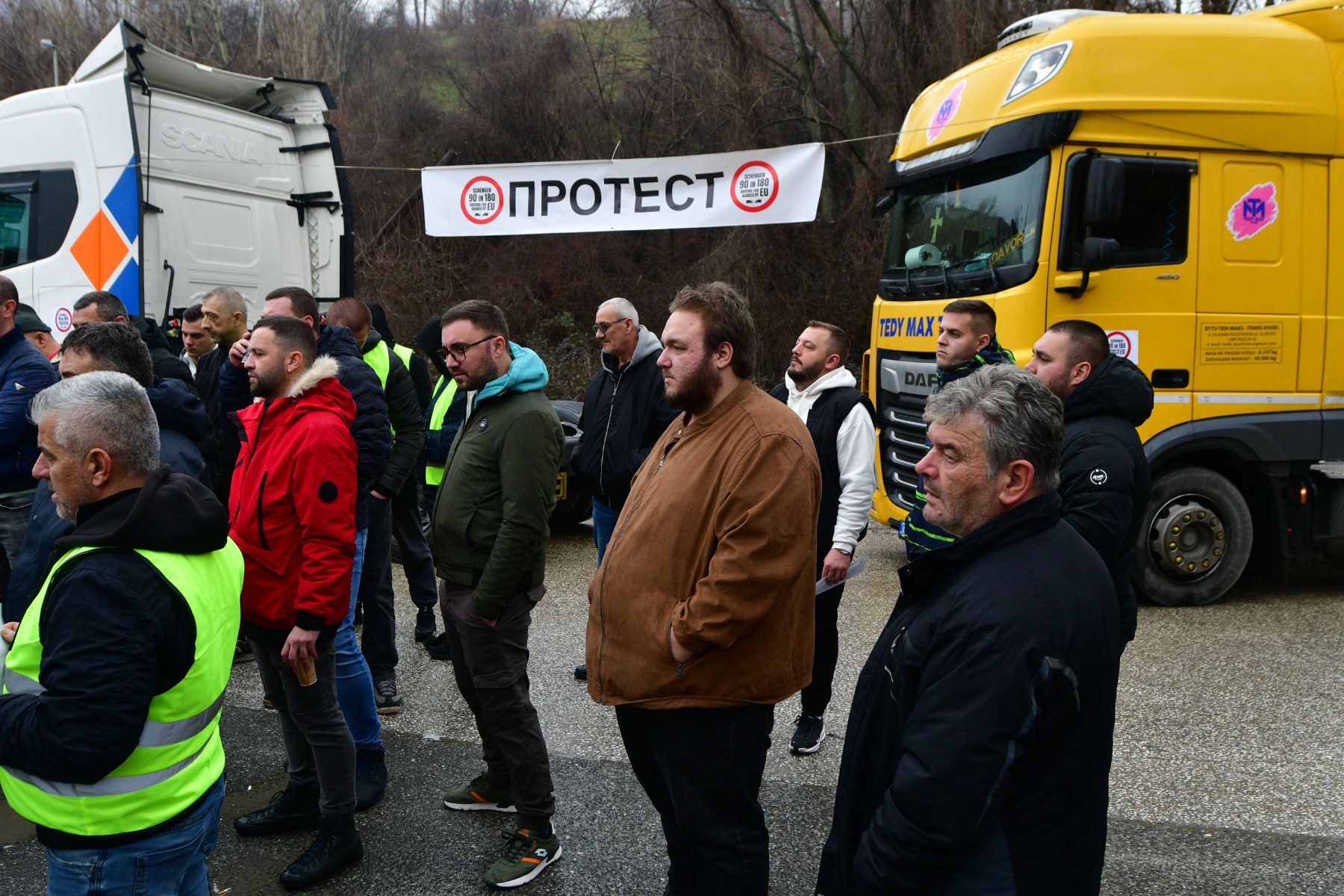 Превозниците од Македонија, Србија, Босна и Херцеговина и Црна Гора, како и што најавија точно на пладне излегоа на протест и го блокираа товарниот сообраќај на сите гранични премини во државата.