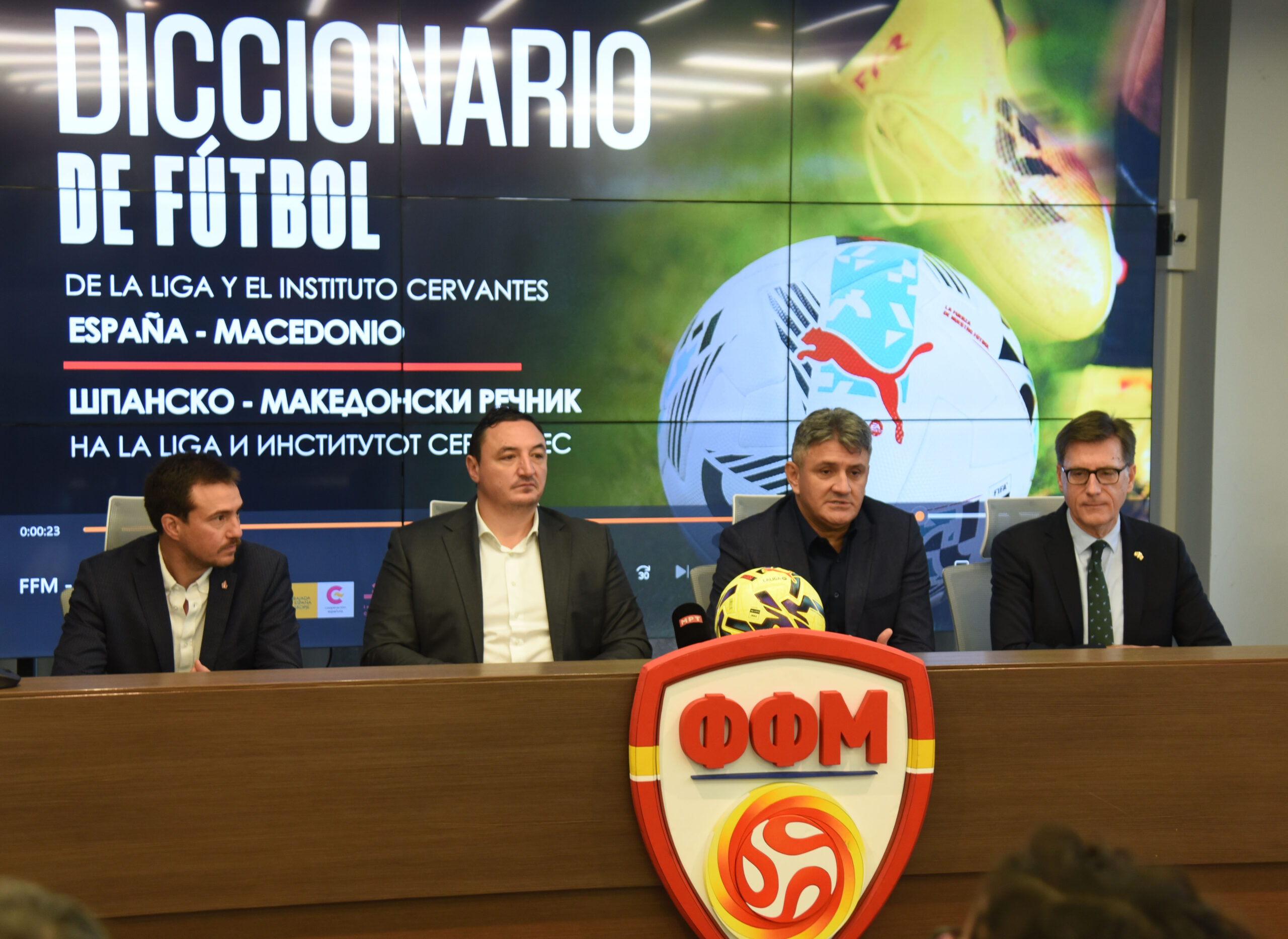 Министерот за спорт, Борко Ристовски, заедно со амбасадорот на Кралството Шпанија, Н.Е. Рафаел Сориано Ортиз, и претседателот на Фудбалската федерација на Македонија, Масар Омерагиќ, денеска во просториите на ФФМ го промовираа првиот шпанско–македонски „Фудбалски речник на Ла Лига“, изготвен во соработка со Институтот Сервантес.