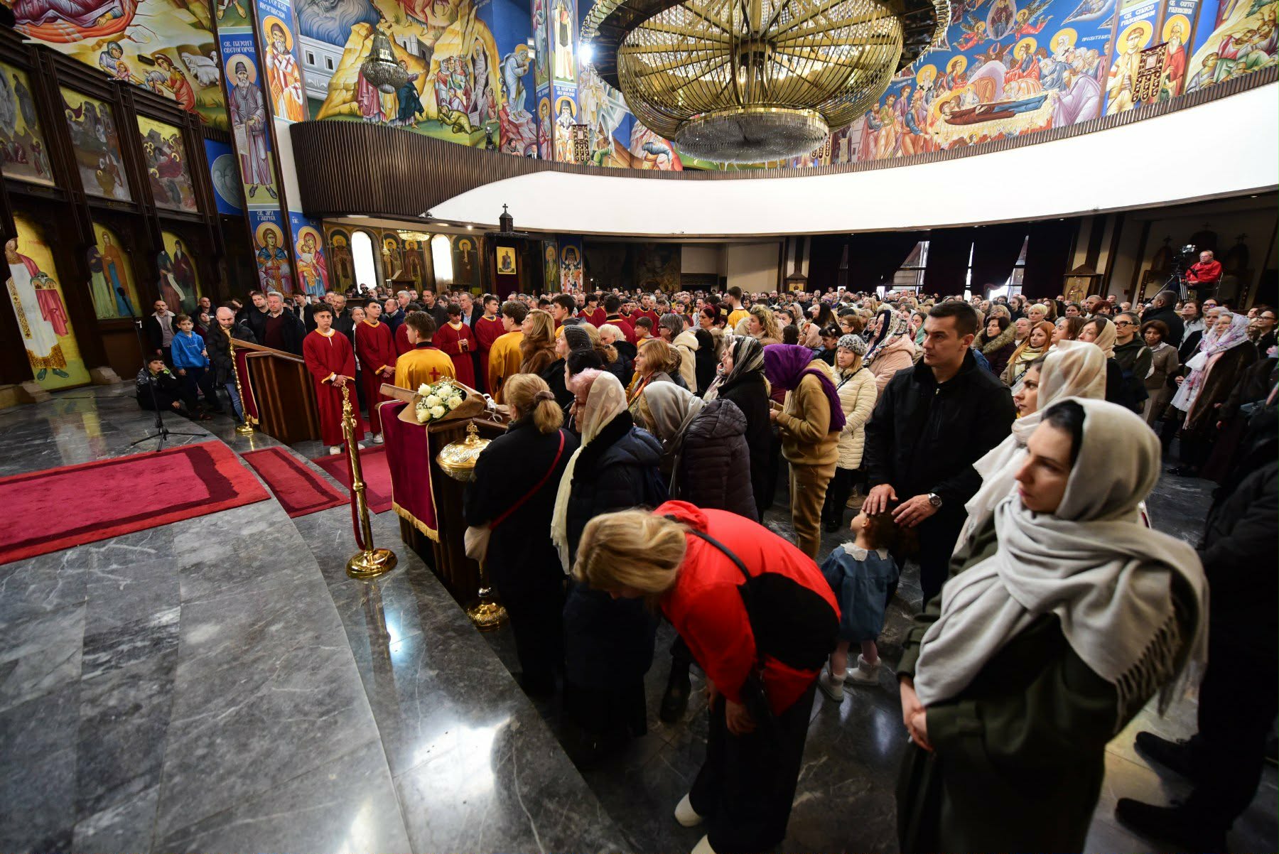 Многубројниот светиклиментов верен народ се причести со светите Христови дарови.