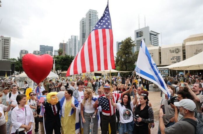 Во Тел Авив, владее еуфорична атмосфера додека стотици луѓе се собираат на Плоштадот на заложниците, и покрај дождот, за да го прослават потпишувањето на договорот меѓу Израел и Хамас. Толпата аплаудира и танцува под американските и израелските знамиња, додека една жена гордо држи знак на кој пишува: „Го сакаме Трамп“.
