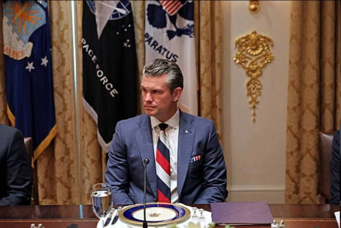 🚨⚡️U.S. Defense Secretary Pete Hegseth attended last night’s meeting between Trump and Zelensky wearing a tie in the colors of the Russian flag 🇷🇺.