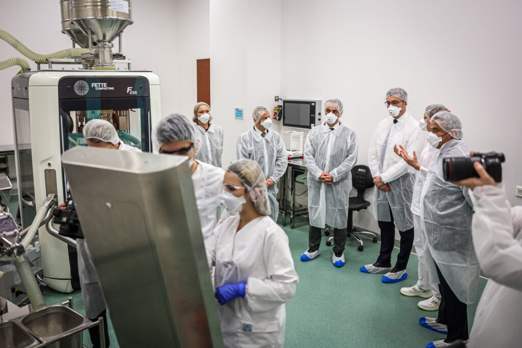 Најновата инвестиција на „Алкалоид“ беше официјално пуштена во употреба за време на посетата на владина делегација предводена од премиерот проф. д-р Христијан Мицкоски, во придружба на министерот за здравство д-р Азир Алиу и директорот на Фондот за здравствено осигурување, Сашо Клековски.