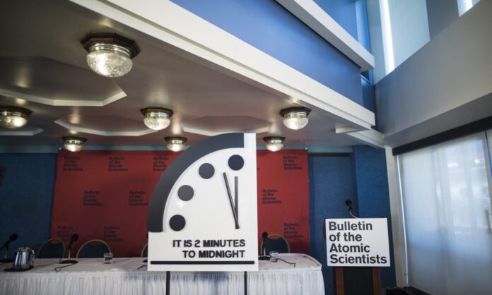 Научниците ги поместија стрелките на „часовникот на судниот ден“ најблиску до полноќ во вторник, наведувајќи ги како причини агресивното однесување на нуклеарните сили како што се САД, Русија и Кина, пропаѓањето на договорот за контрола на нуклеарното оружје, конфликтите во Украина и на Блискиот Исток и развојот на вештачката интелигенција.
