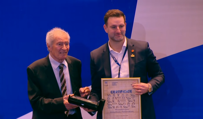 Наградата од страна на претедателот на ИХФ, Хасан Мустафа, му беше доделена на претседателот на македонската куќа на ракометот, Александар Стефанов.