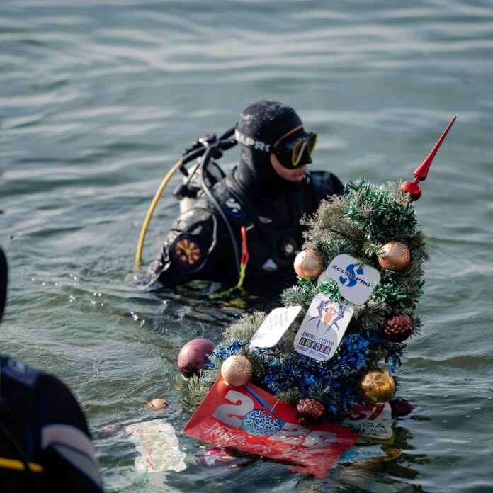 Со традиција подолга од 20 години, нуркачите на Нуркачкиот центар „Амфора“, во соработка со здружението за ретки болести и со поддршка на волонтерите на Црвениот крст од Охрид, ја поставија и ја накитија новогодишната елка под вода кај Заливот на Коските – Музеј на вода, симболично одбележувајќи ги новогодишните и божиќните празници.
