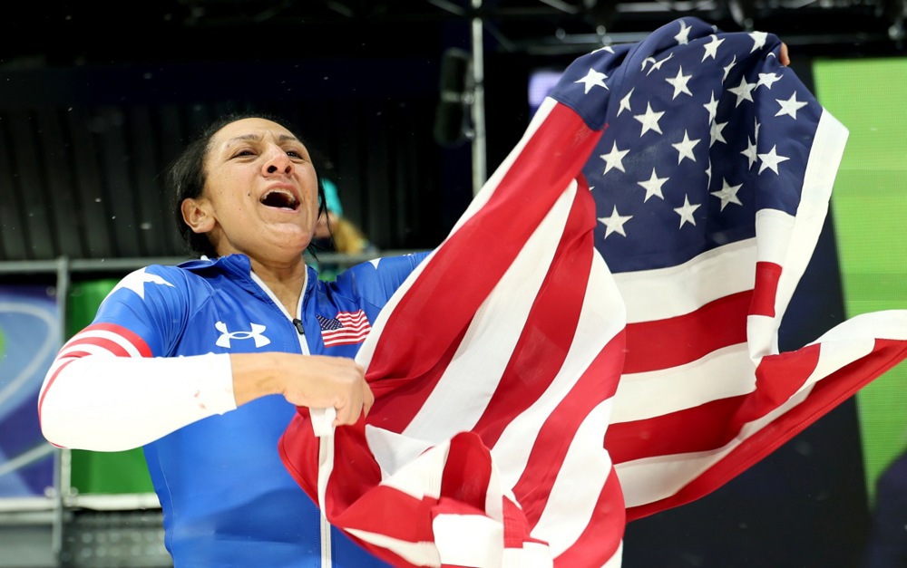 Видео објавено на Инстаграм ја покажува 41-годишната олимпијка преплавена од емоции, држејќи го американското знаме со солзи во очите по неверојатниот настап.
