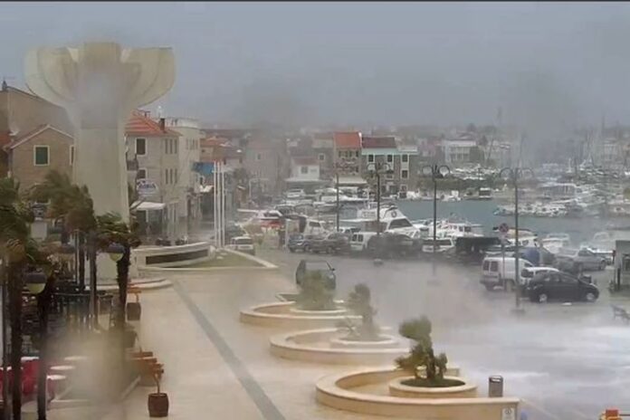 Силна бура проследена со силни ветрови и обилни врнежи од дожд ги погоди крајбрежните области во Хрватска, најтешко во Далмација, каде што комбинацијата од низок притисок и бурен јужен ветер предизвикува силна циклонска плима.