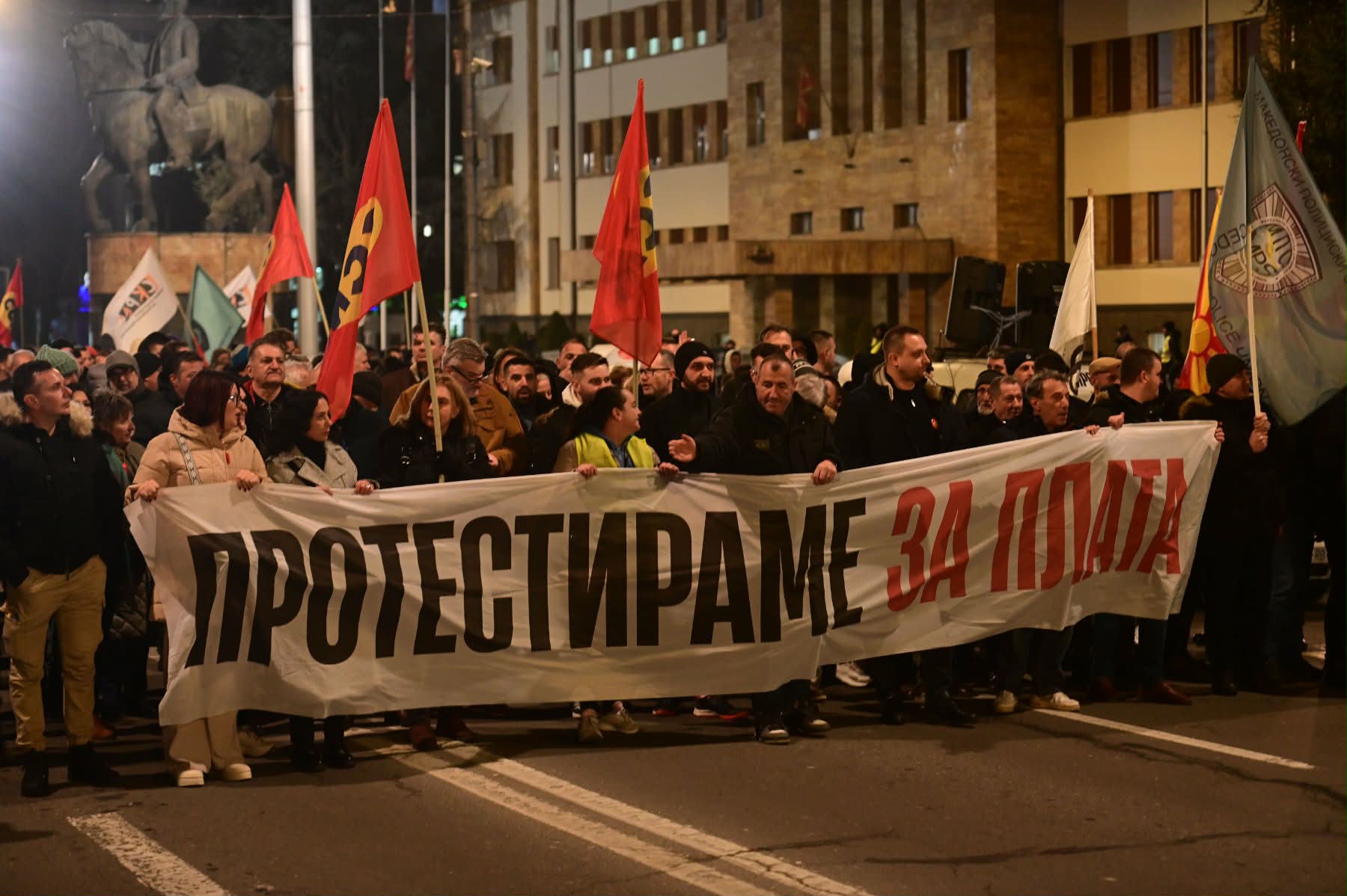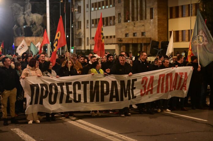 Сојузот на синдикатите продолжува со протестите за зголемување на минималната плата на 600 евра и на сите други плати за 6.000 денари. Денеска ќе ја блокираат раскрсницата пред Стопанската комора, Организацијата на работодавачи и Бизнис-конфедерацијата. Претседателот на Сојузот на синдикатите на Македонија, Слободан Трендафилов, порача дека не отстапува од борбата за повисоки плати на работниците и подготвува голем работнички протест, за кој ќе биде обезбеден превоз за работниците од другите градови во државата.