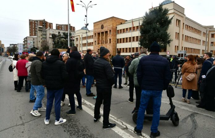 Како што беше и најавено, Сојузот на синдикатите на Македонија утринава во 9 часот ја започна блокадата на македонското Собрание со цел да се оствари нивното барање за зголемување на минималната плата на 600 евра, а на сите останати плати за 100 евра.