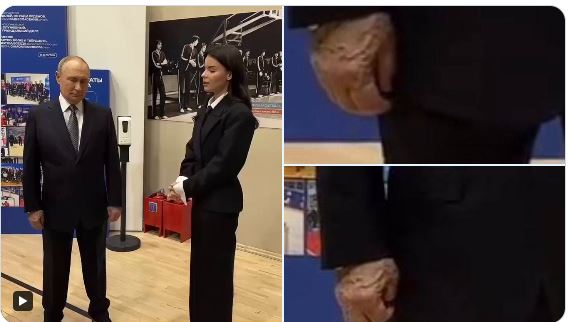 Додека ја подаваше раката кон младата жена, на десната рака му беа видливи отечени вени, истакнати тетиви и тенка, збрчкана кожа. Видеото од средбата го прикажува рускиот претседател како нервозно ги движи прстите и ја стиска тупаницата под ракавот од јакната.