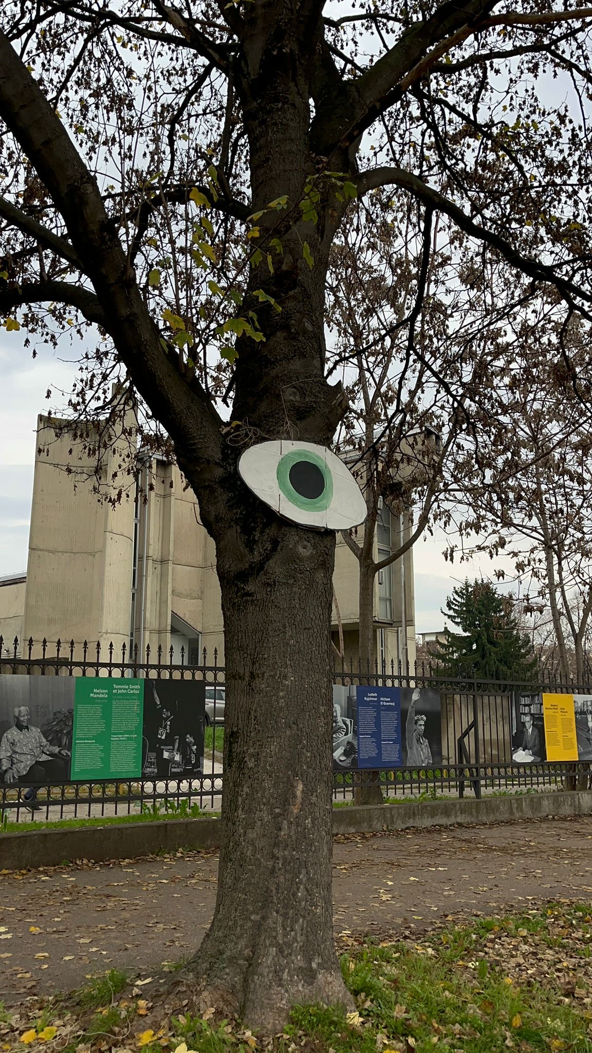 Пред влезот беа поставени десетици „очи” како порака дека јавноста внимателно го следи процесот и дека сите очи се вперени кон институциите кои треба да обезбедат правично, независно и транспарентно судење.