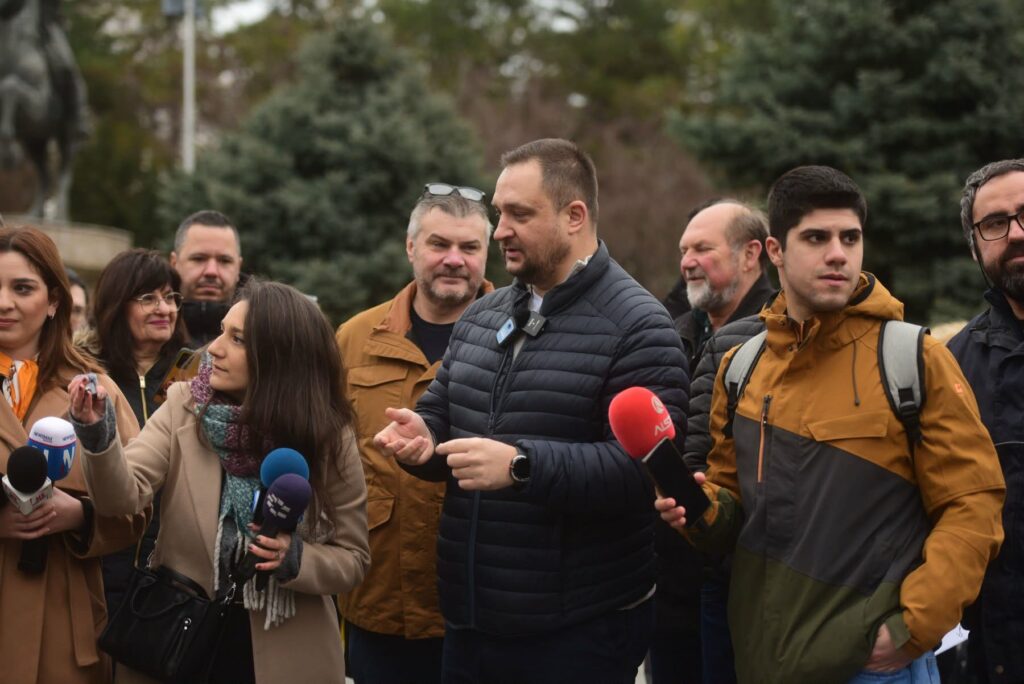 Иако малку на број сепак доволно според законот да протестираат и да го блокираат пристапот до Собранието. Работниците кои денеска излегоа на улица и покрај студеното време, испратија порака до пратениците дека тие се оние кои го блокираат законот за зголемување на минималната плата повеќе од една година и кои не сакаат да ја прифатат иницијативата на ССМ за намалување на функционерските плати. Тие упатија апел до народните избраници да не ги бараат пред избори, бидејќи како што велат тие се како гулабите пред избори им јадат од дланка, а потоа ги гледаат од високо.