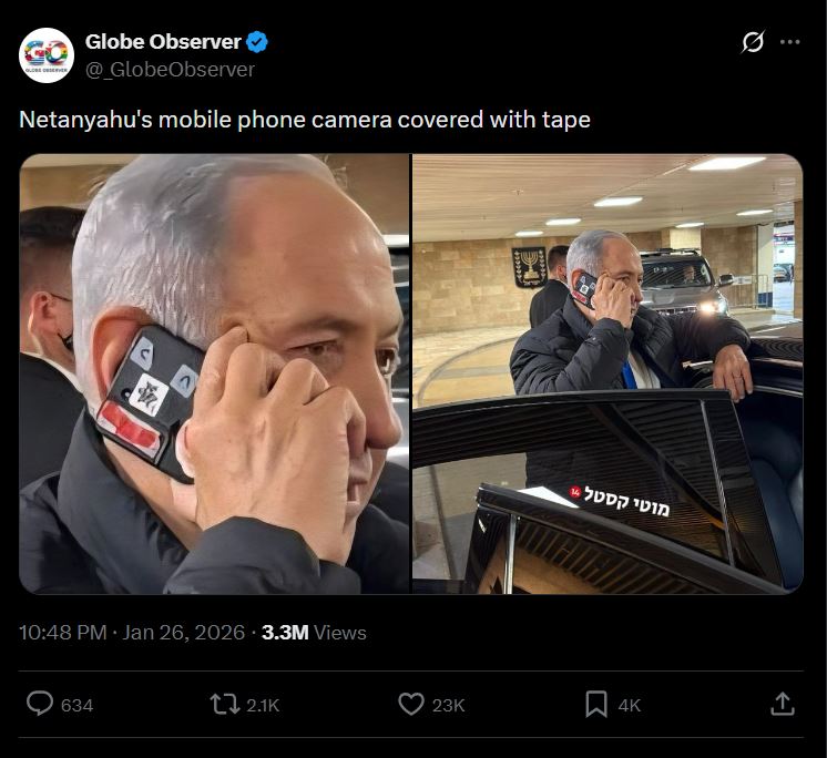 Се верува дека Нетанјаху ја користи лентата за да спречи неовластено снимање во чувствителни области, хакерски напади што би можеле далечински да ја активираат камерата и дигитален надзор и собирање доверливи визуелни податоци.