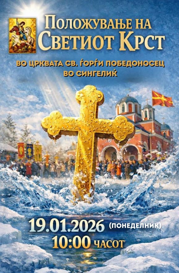 Положувањето на светиот крст по пов од големиот христијански празник „Богојавление“ – Водици на територијата на општина Гази Баба в понеделник ќе се одржи во базенот во црквата „Свети Ѓорѓи Победоносец“, во Сингелиќ со почеток во 10:00 часот.