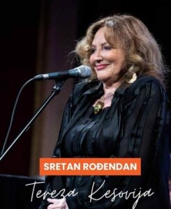 Славната пејачка на забавна музика, Тереза Кесовија денес го слави својот 87. роденден. Во времето на поранешната Југославија беше и официјално прогласена за првата дама на естрадната сцена, со огромен број хитови кои станаа евергрини: “Пријатељи стари, гдје сте“, “Ноно добри, мој ноно“, “Моја посљедња и прва љубави“, “Сунчане фонтане“, “Музика и ти“, “На кушину“, “Кад порастеш сине“, “Ларина пјесма“, “На Страдуну“, “Рустикана“, “Пред твојим вратима“, “Што је остало од љубави“, “Молим те остани“, “Ко ми је крив“, “Сутра је нови дан“, “Љубав је мој гријех“, “Свирај ми, свирај“, “Кад се једном вратиш ти“, “Слободна сам“, “Још се срце уморило није“…. На мегапопуларниот “Сплитски фестивал“ десетпати убедливо победи, а победите многу често ги имаше и на фестивалите: “Загреб-фест“, “Белградска пролет“, “Опатија“, “Месам“, “Карневал-фест“…. двапати настапи на Евровизискиот фестивал, представувајќи ги Југославија, а и Кнежеството Монако по желбата на Принцезата Грејс Кели. Еднаш беше втора на Евровизискиот натревар за најдобрата песна на Швајцарија. Во Југославија во период од 1972 до 1980 година беше констатно прогласувана за “Пејачка на годината“ по Изборот на публиката од Охрид до Блед. Тереза одлично пее и на неколку светски јазици, на: француски, италијански, руски, германски, португалски и англиски. Кај нас во Македонија ќе ја памтиме и по феноменалната интерпретација на старата македонска песна “Ајде, слушај, слушај калеш, бре Анѓо“, која во забавен-поп аранжман ја сними со браќата Тавитијан и ја испеа во живо на Стадионот во Скопје.