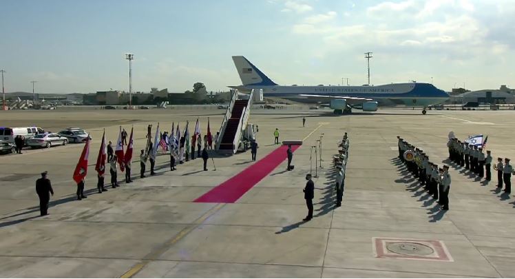 Американскиот претседател Доналд Трамп слета на аеродромот Бен Гурион, каде што го пречека израелскиот премиер Бенјамин Нетанјаху во друштво на сојузници и функционери. Со насмевка и топли зборови, Нетанјаху разговараше со Мајк Хакаби, амбасадорот на САД во Израел и долгогодишен поддржувач на Трамп.
