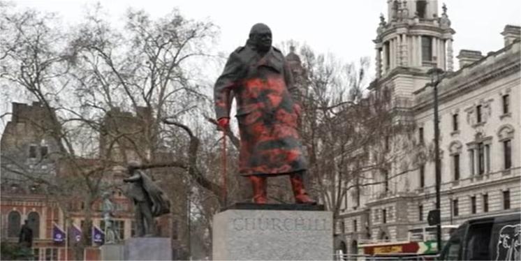 За време на протестот „Животот на црнците е важен“ во јуни 2020 година, на пиедесталот пишуваше „Черчил е расист“.