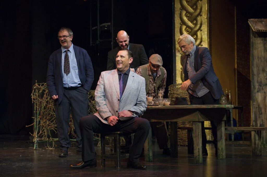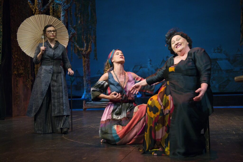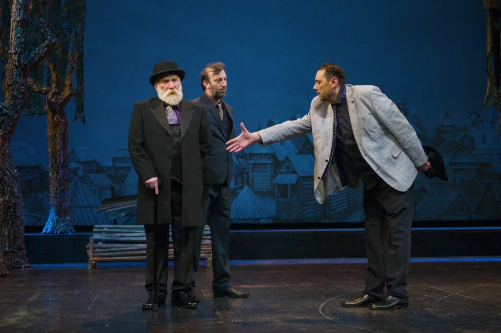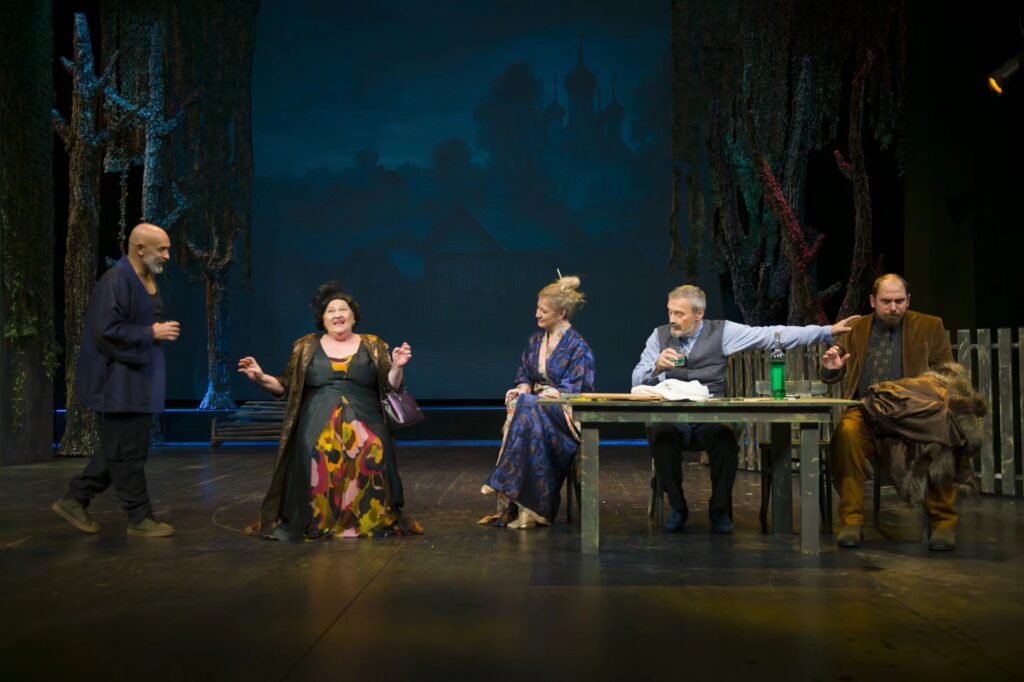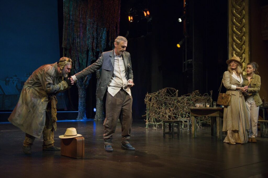 А во оваа претстава играат импресивен број актери – 23 од ансамблот на МНТ: Тони Михајловски, Габриела Петрушевска, Никола Ристановски, Звездана Ангеловска, Софиа Насевска-Трифуновска, Владо Јовановски, Григор Јовановски, Ана Стојановска, Оливер Митковски, Тања Кочовска, Александар Микиќ, Верица Недеска, Сашко Коцев, Гораст Цветковски, Јордан Симонов, Сашка Димитровска, Емил Рубен, Александар Ѓорѓиески, Дамјан Цветановски, Ивица Димитријевиќ, Александар Михајловски, Јана Вељановска и Стефан Спасов. Секој од нив, со својот уникатен печат, придонесува за формирањето на целокупниот приказ на претставата.