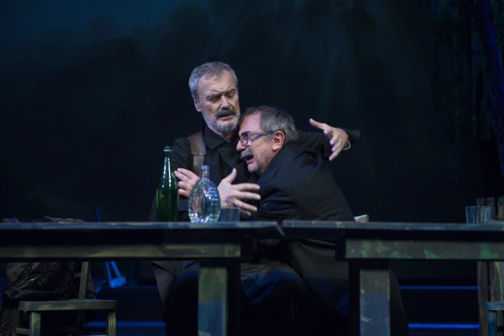 Нашите реномирани актери, но и младите актери и оние што ги толкуваат главните ролји, како и оние со помалку време на сцената, преку своите реплики и изведба перфектно го формираат карактерот на својот лик, неговата психологија и јасно ѝ го прикажуваат на публиката тој духовен распад на човекот.