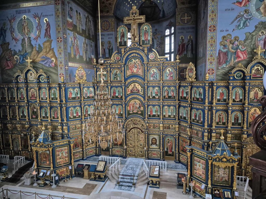 Висината од подот до сводовите на горната црква е околу 32 метри, а до највисоката точка под куполата е приближно 44 метри. Внатре, катедралата содржи значајни уметнички и верски дела. Иконите и фреските во голем број, повеќе од 170, се изработени од уметници од Палех, Русија, познати по својата мајсторска техника и по традицијата. Главниот иконостас е величествен – широк е околу 37 метри, со централна петкатница на главниот олтар, висока околу 18 метри.