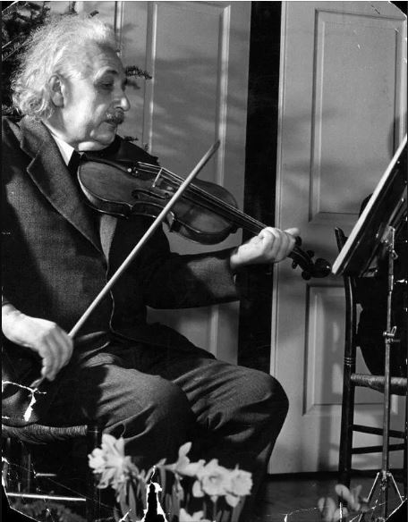 Ајнштајн почнал да свири виолина на шестгодишна возраст и вежбал речиси секој ден во текот на целиот свој живот, дури и настапувал јавно, а во една пригода изјавил дека ќе продолжел со музичката кариера доколку не станел физичар. По инсистирање на својата мајка, како дете земал и часови по виолина, но се откажал. Подоцна, многу уживал во Моцартовите виолински сонати. Во време на прогонот, тој бил принуден да ја крие виолината од нацистите за да може кришум да ужива во нејзините звуци.