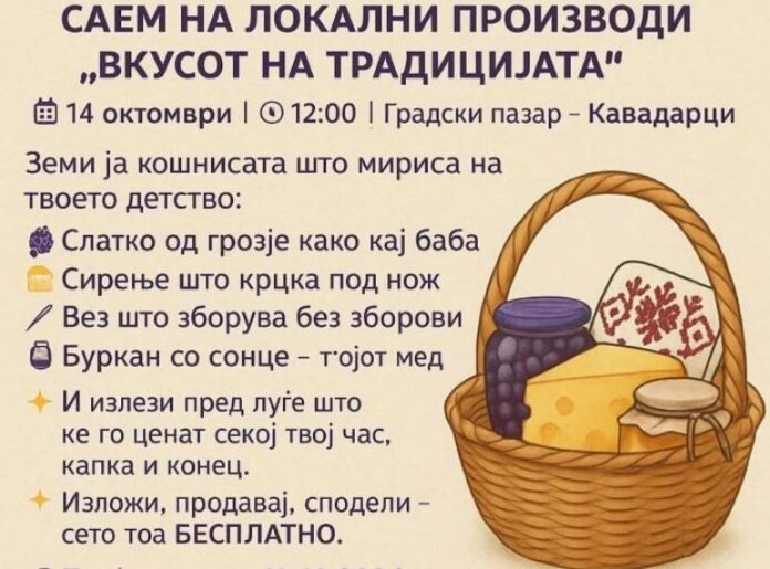 -Вкусот на локалните производи ја раскажува приказната на еден народ. На раце што создаваат, на срце што не заборава. Имаме кошници полни задоволства, што мирисаат на едно детство. Слатко од грозје како кај баба, сирење што крцка под нож, вез што зборува без зборови, буркан со сонце – твојот мед. Имаме производители и луѓе што ќе ги ценат нивниот труд, секој нивни час, нивната пот, нивниот конец. На саемот може и да се купат производи – појасни Марија Камчева, координатор за еднакви можности при Општина Кавадарци.