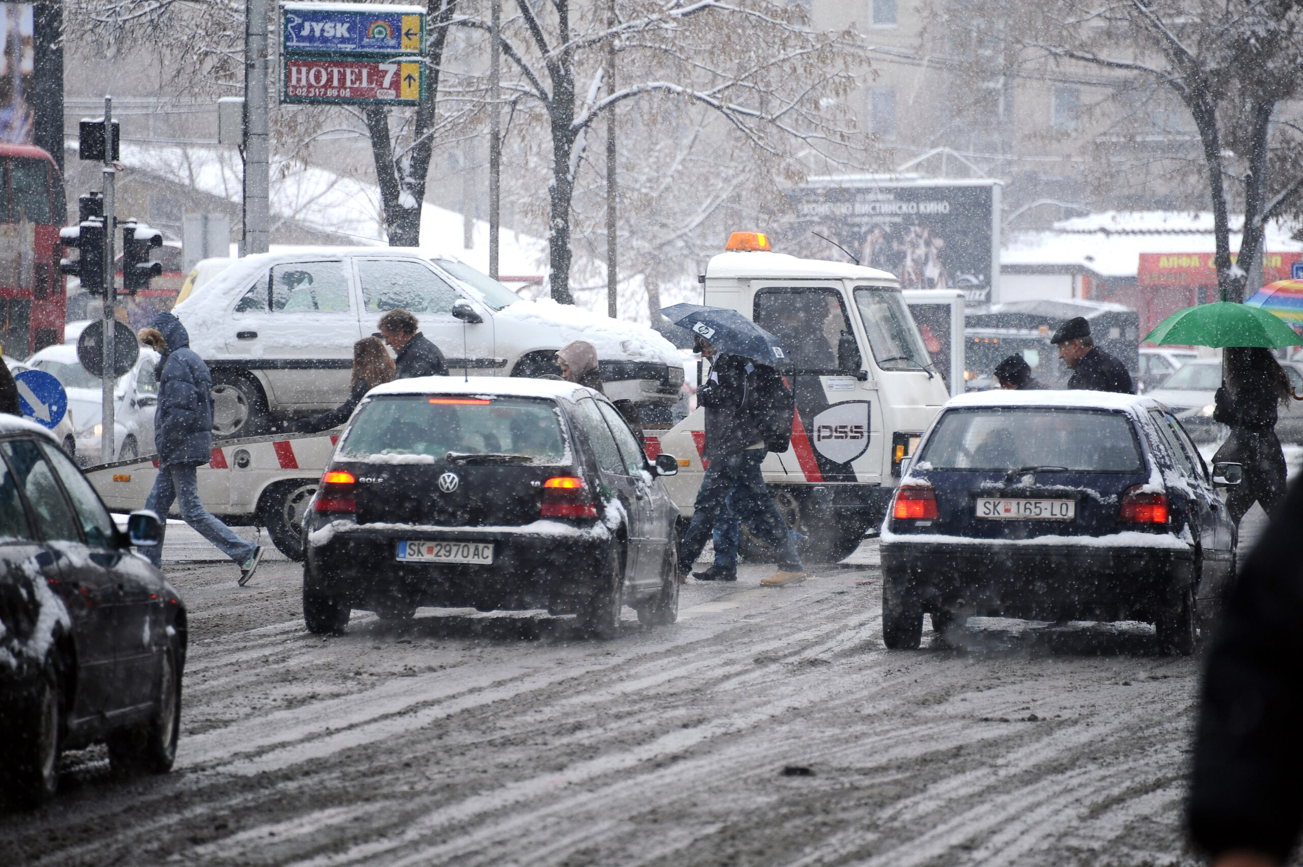 Снегот што утринава почна да паѓа во главниот град ги израдува најмалите, но предизвика главоболки кај надлежните. Снежните врнежи создадоа проблеми во сообраќајот. Возилата возеа бавно бидејќи коловозот на некои од улиците беше подмрзнат, а исто така и тротоарите не беа исчистени. Граѓаните реагираа на ненавременото интервенирање на службите, иако немаше којзнае колку наталожено снег. Поради тоа, многу од граѓаните доцнеа на работа, а децата на училиште.