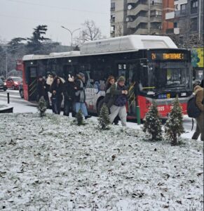 – Едниот автобус не го дочекав бидејќи се расипа. Требаше да чекам уште 10 минути за да дојде друг. Тоа се случуваше со автобусот со број 24 меѓу ТЦ „Сити мол“ и „Лептокарија“. Со вториот патувавме до следната станица уште 10 минути. Во меѓувреме, возачот се жалеше дека не може да вози бидејќи е лизгаво. Автобусот остана на меѓустаница, а сите патници слеговме и тргнавме пеш, бидјеќи така беше побезбедно и побрзо – еден скопјанец го раскажа своето утринско патешествие за весникот ВЕЧЕР.
