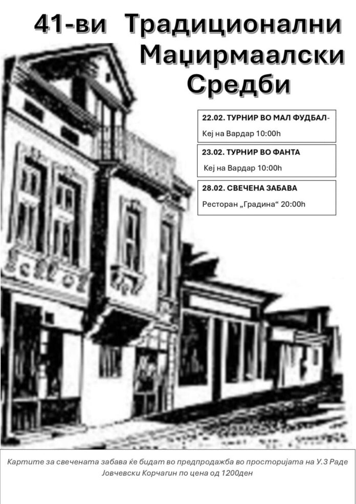 Четириесет и првите традиционални „Маџирмаалски средби“ ќе започнат на 22 февруари 2025 година, со турнирот во мал фудбал, кој ќе се одржи на кејот на Вардар, со почеток во 10:00 часот.