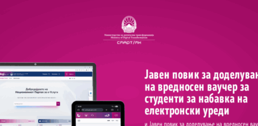 Министерството за дигитална трансформација ја информира јавноста дека од денеска е отворен Јавниот повик за доделување на вредносни ваучери за студенти за набавка на електронски уреди, кој се спроведува преку Националниот портал за е-услуги – uslugi.gov.mk. Сите студенти може да аплицираат најдоцна до 20 декември 2025 година, а реализацијата на ваучерите, односно подигањето на уредите, може да … Продолжи со читање Започна аплицирањето за електронски ваучери за студенти