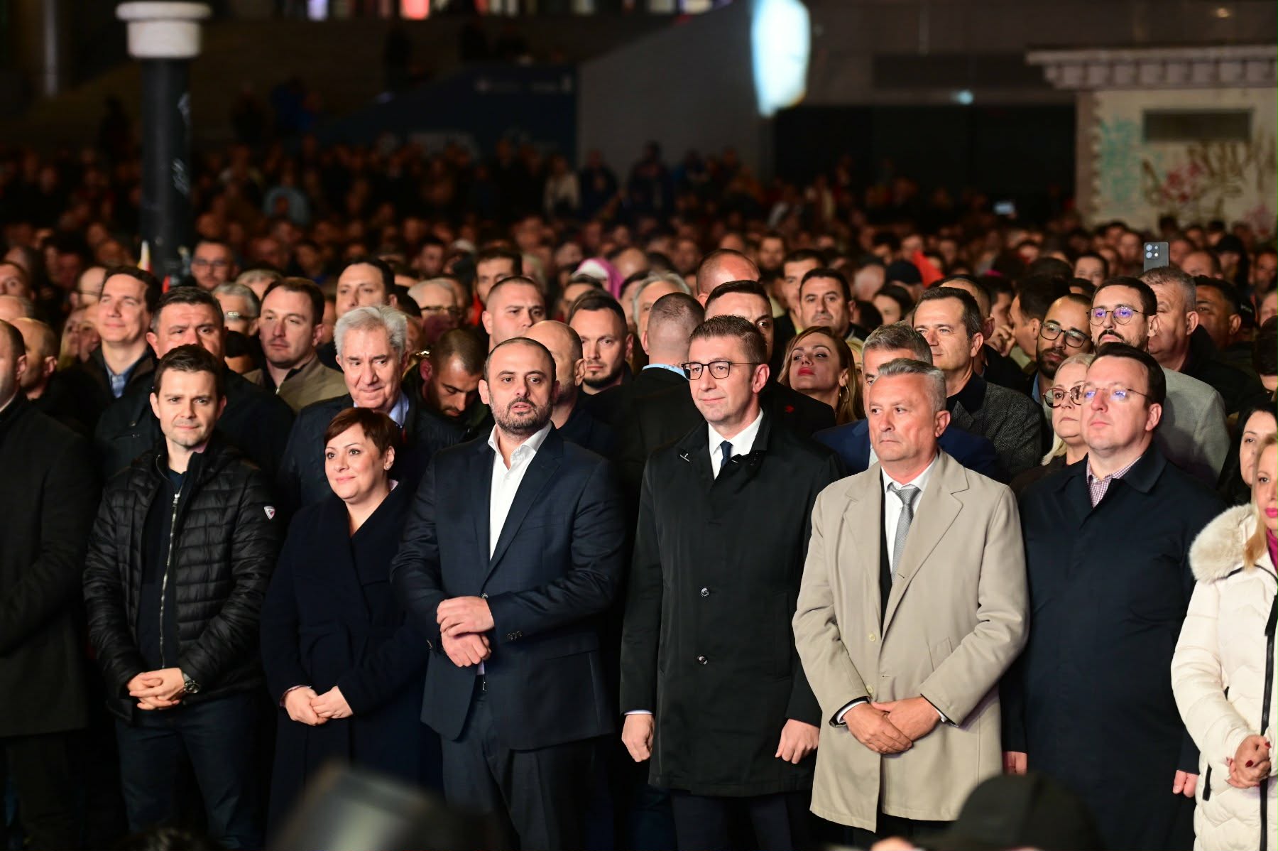 „Ни оставија институции што не работеа, економија што одеше надолу… Го расклопија системот парче по парче, како да бил нивен личен имот. Го претворија јавниот сектор во партиска филијала, институциите во неми сведоци, а народот во заложник,“ кажа Мицкоски.