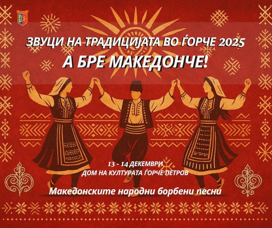 Општина Ѓорче Петров организира дводневна манифестација „Звуци на традицијата во Ѓорче 2025 – А бре Македонче!“, исполнета со македонска песна, традиција и гордост.